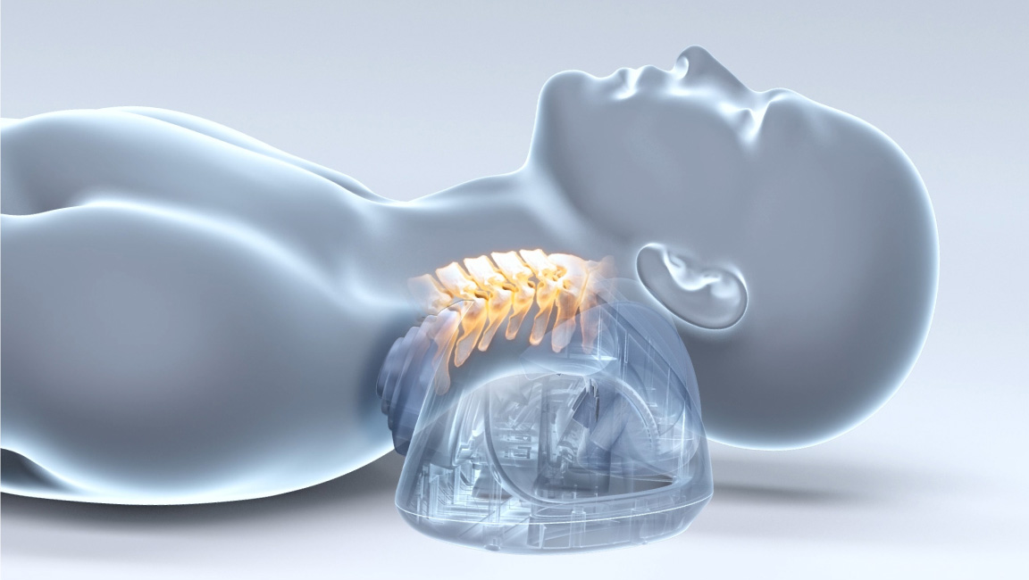 牽引モードとストレッチモードの組み合わせで、 首をしっかり伸ばして動かします。 |
