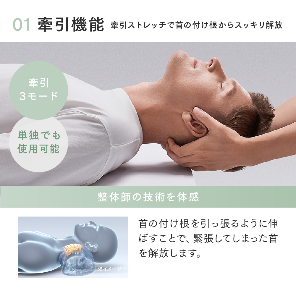 牽引 | 首を 整えるような体感 |